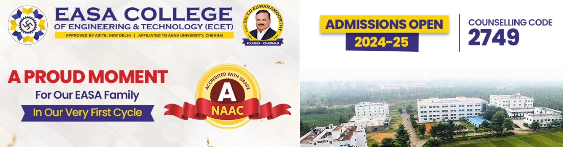 Coimbatore in Tamil Nadu, known for its contribution to technical education and industrial development in Southern India has yet another unique engineering institution named EASA College of Engineering and Technology(ECET) located at Navakkarai, on the Coimbatore-Palakkad Highway(NH-47).